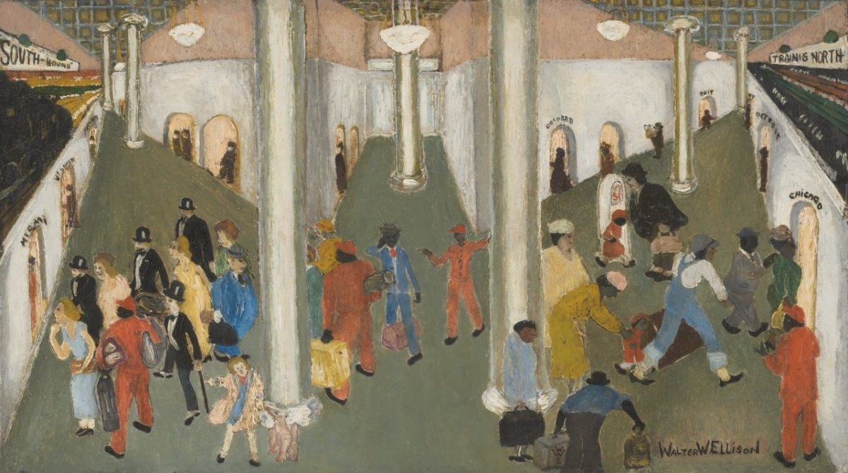 Walter Ellison, American, 1899–1977; associated with Federal Works Agency, Work Projects Administration; Train Station, 1935; oil on cardboard; 8 x 14 inches; Art Institute of Chicago, Charles M. Kurtz Charitable Trust and Barbara Neff Smith and Solomon Byron Smith funds; through prior gifts of Florence Jane Adams, Mr. and Mrs. Carter H. Harrison, and the estate of Celia Schmidt 1990.134; © Walter Ellison