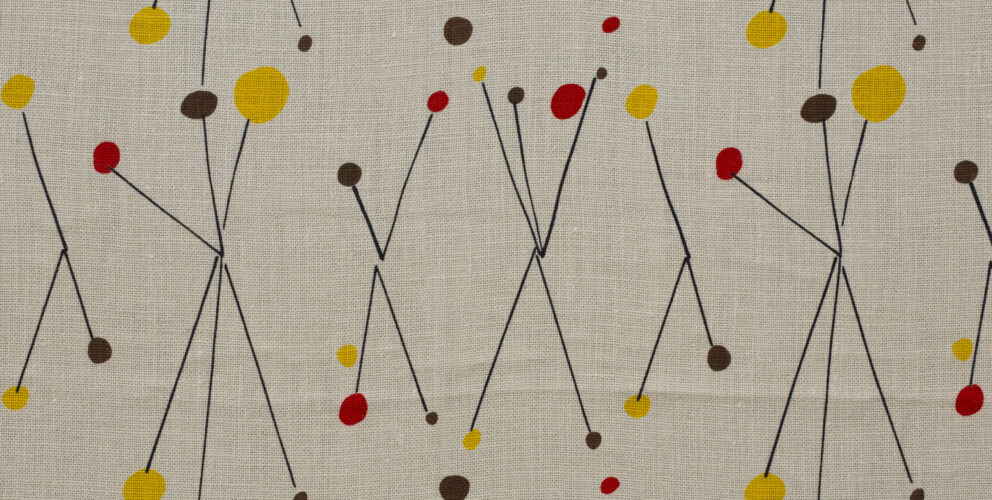 A. Joel Robinson, American, 1915–2012; “Roman Candles Textile,” 1951–52; printed linen; 72 × 50 1/2 inches; Saint Louis Art Museum, Marjorie Wyman Endowment Fund 12:2020