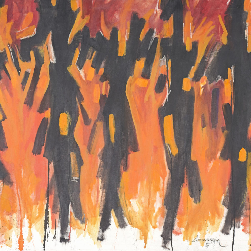 T. C. Cannon, Caddo/Kiowa, 1946–1978; Firelights, 1965; oil on canvas; 36 3/4 x 48 3/4 inches; IAIA Museum of Contemporary Native Arts, Santa Fe; © Estate of T. C. Cannon