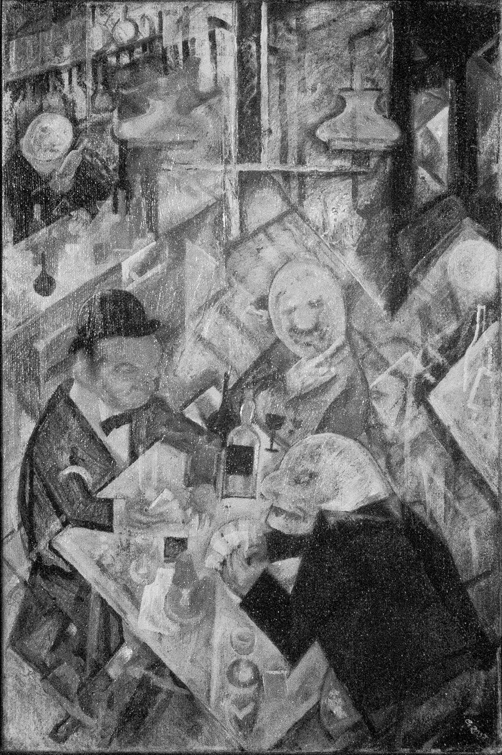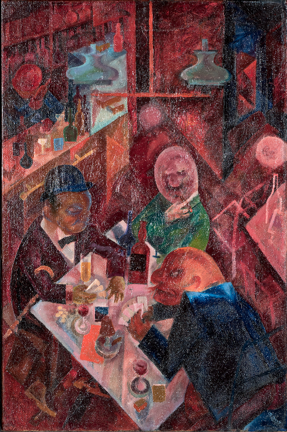 George Grosz, German, 1893–1959; Café, 1916; oil on canvas; 19 x 12 3/4 inches; Saint Louis Art Museum, Bequest of Morton D. May 889:1983