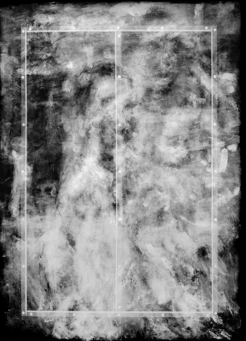 X-radiography uses an X-ray source and sensitive film to produce an image of the painting’s composite layers. Materials transparent to X-rays appear dark in the images, while X-ray–absorbing materials like lead white and metal hardware appear white. Artist’s changes and, in some exciting instances, completely different, earlier compositions may be unveiled.