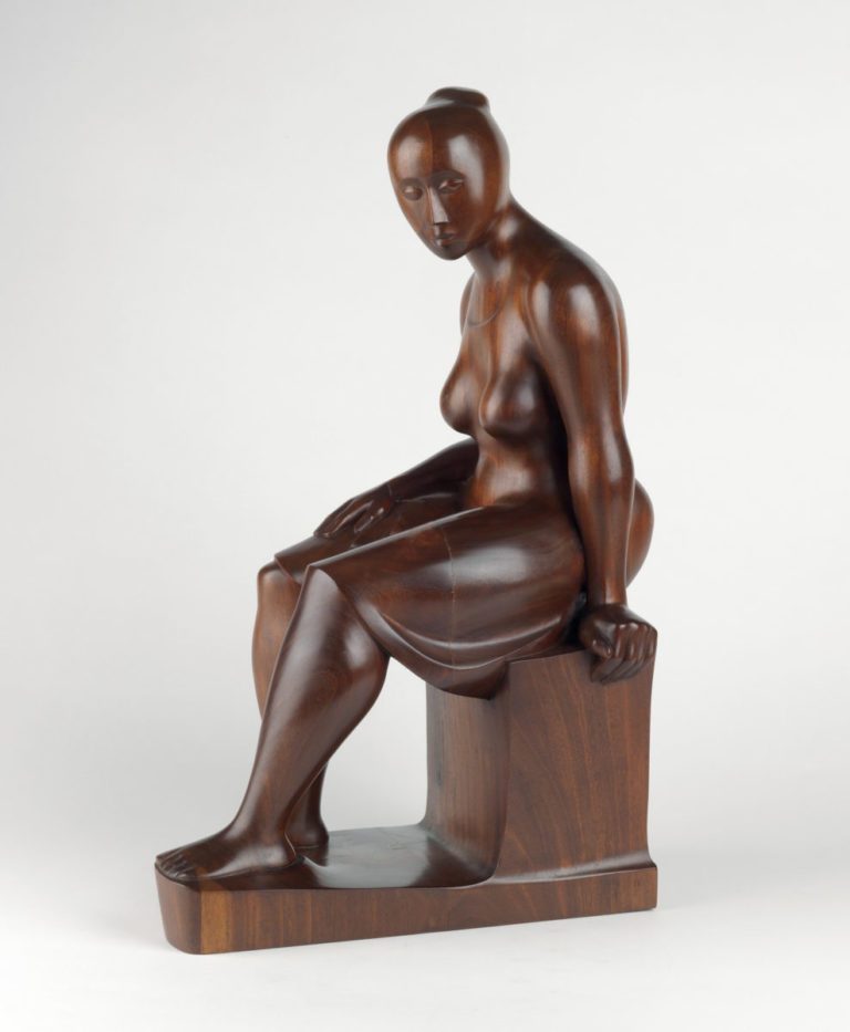 Elizabeth Catlett, American (active México), 1915–2012; Seated Woman, 1962; mahogany; 22 1/2 x 13 1/2 x 7 inches; Saint Louis Art Museum, Friends Fund Endowment; Gift of Edward J. Costigan in memory of his wife, Sara Guth Costigan, by exchange; The James D. Burke Art Acquisition Fund, Eliza McMillan Trust, Funds given by the Alturas Foundation, and Museum Purchase 75:2019; © 2021 Catlett Mora Family Trust / Licensed by VAGA at Artists Rights Society (ARS), NY