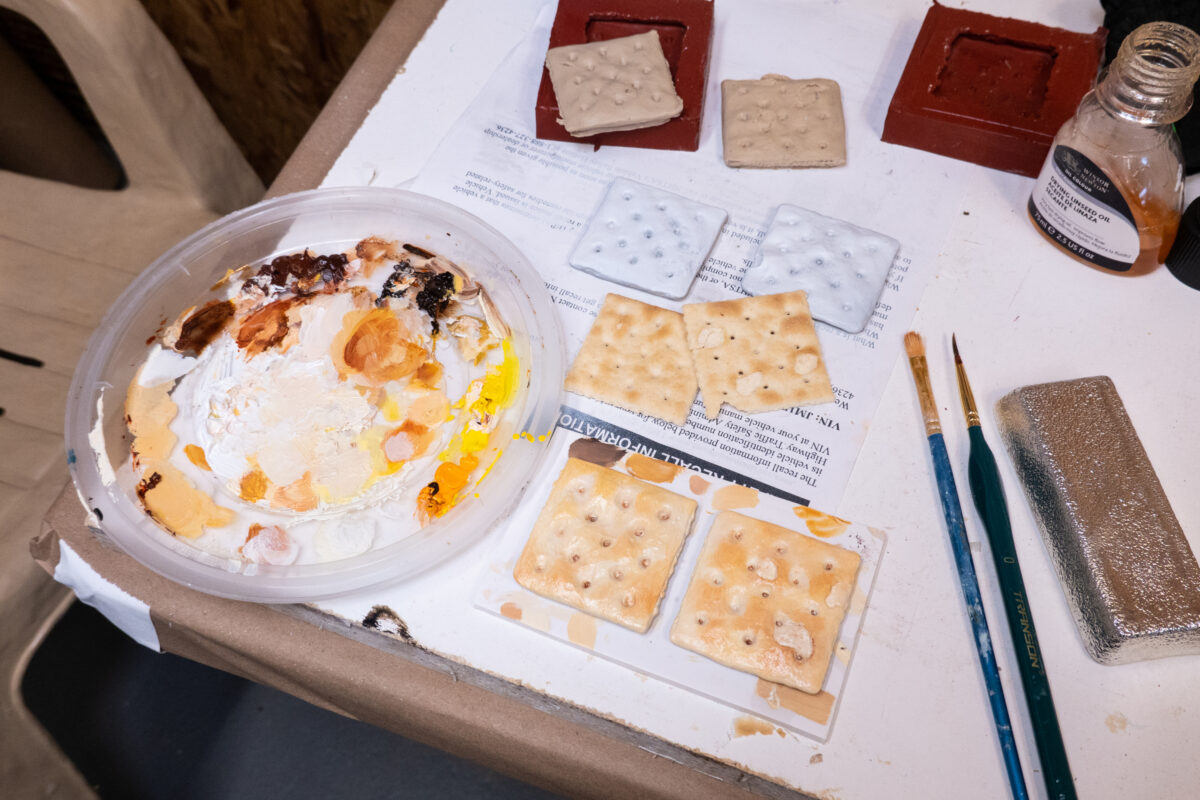 “Currents 123: Tamara Johnson” will showcase the artist’s depictions of household objects, ranging from colanders and garden hoses to an array of buffet treats, meticulously crafted to fool the eye. Her sculptures are created from a variety of materials, including copper, concrete and resin and are sheathed in silver leaf, coated with enamel and brushed with diamond dust. The assemblage of sculptures seems to be plucked from a rummage sale or kitchen drawer. Known for her witty, hypernaturalistic sculptures, Johnson’s new work focuses on grasping notions of femininity, sensuality, vulnerability and humor through a wide range of media and cultural touchpoints.