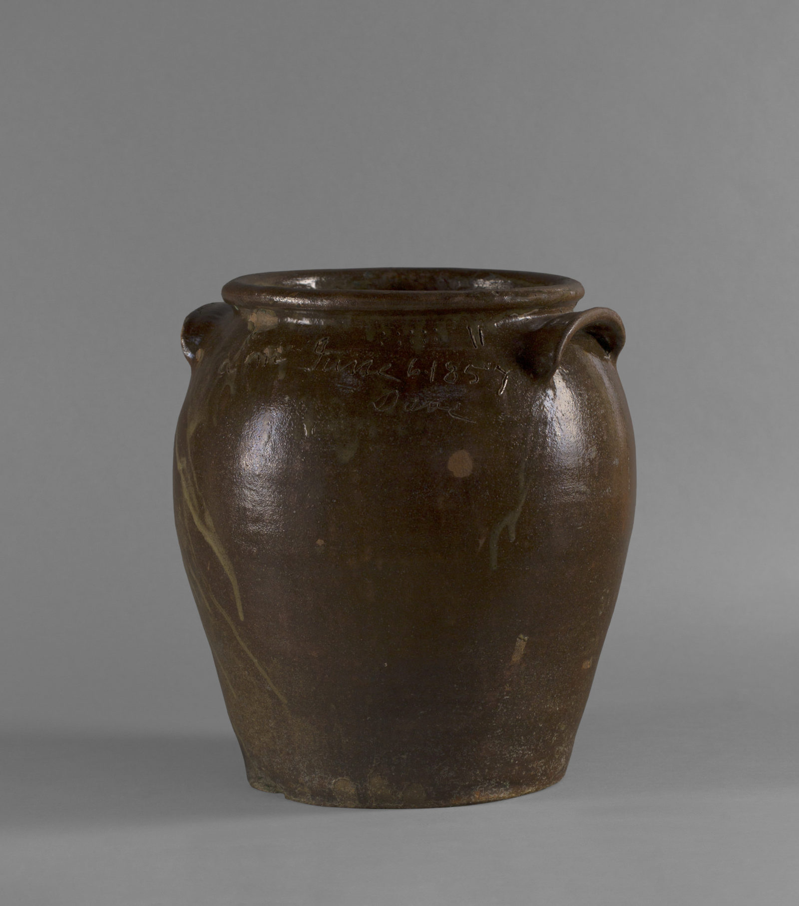 David Drake, American, c.1801–after 1870; "Jar," June 6, 1857; alkaline-glazed stoneware; 17 x 15 3/8 x 15 3/8 inches; Saint Louis Art Museum, Richard Brumbaugh Trust in memory of Richard Irving Brumbaugh and Grace Lischer Brumbaugh, Friends Fund, Marjorie Wyman Endowment Fund, The Lopata Endowment Fund, Mary Elizabeth Rosborough Decorative Arts Fund, and the Margarita M. and Roland E. Jester Endowment Fund for the Decorative Arts 326:2020