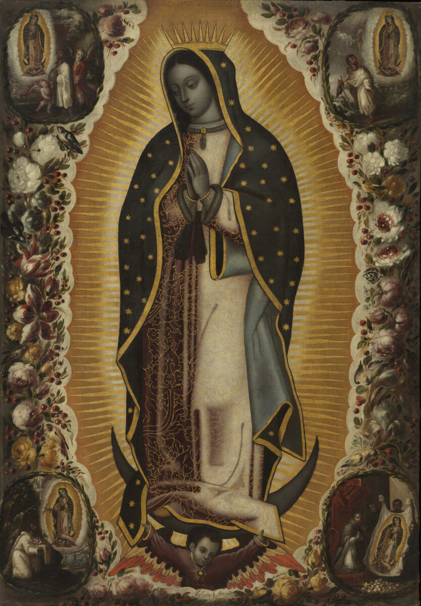 Antonio de Arellano, Mexican, 1638–1714, and Manuel de Arellano, Mexican, 1662–1722, “Virgin of Guadalupe” (“Virgen de Guadalupe”), 1691; oil on canvas; 7 1 7/16 × 48 9/16 inches; Purchased with funds provided by the Bernard and Edith Lewin Collection of Mexican Art Deaccession Fund M.2009.61; photo © Museum Associates/LACMA