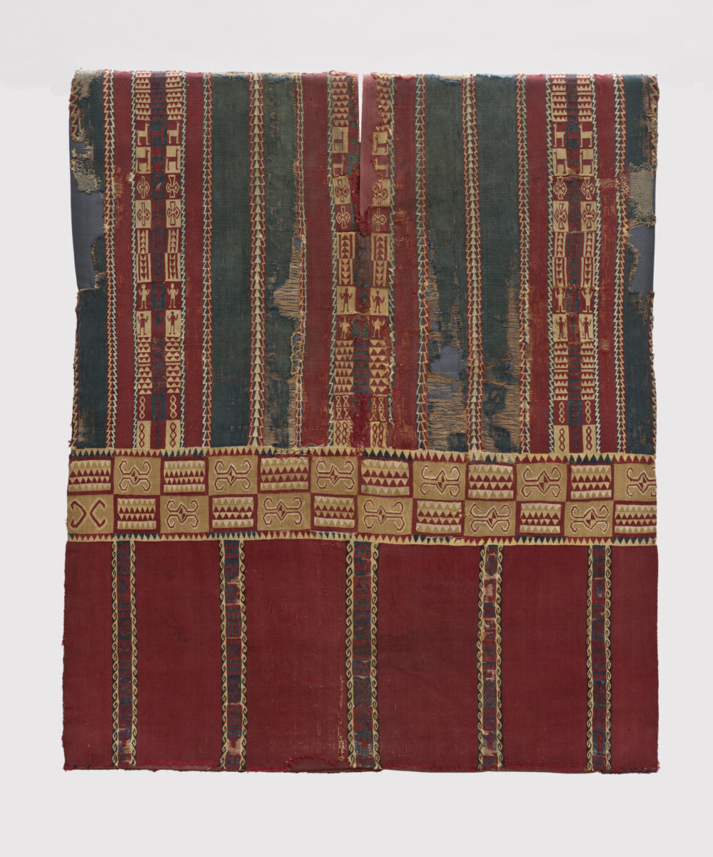 Unidentified artist, Southern Andes; “Man’s Tunic” (“Uncu”) (“túnica masculina [uncu]”), 16th century; camelid-fiber and cotton tapestry weave, with crosslooped embroidery and braided edging; 35 3/4 x 29 3/4 inches; Los Angeles County Museum of Art, Costume Council and Museum Associates Purchase M.78.54.2; photo © Museum Associates/LACMA