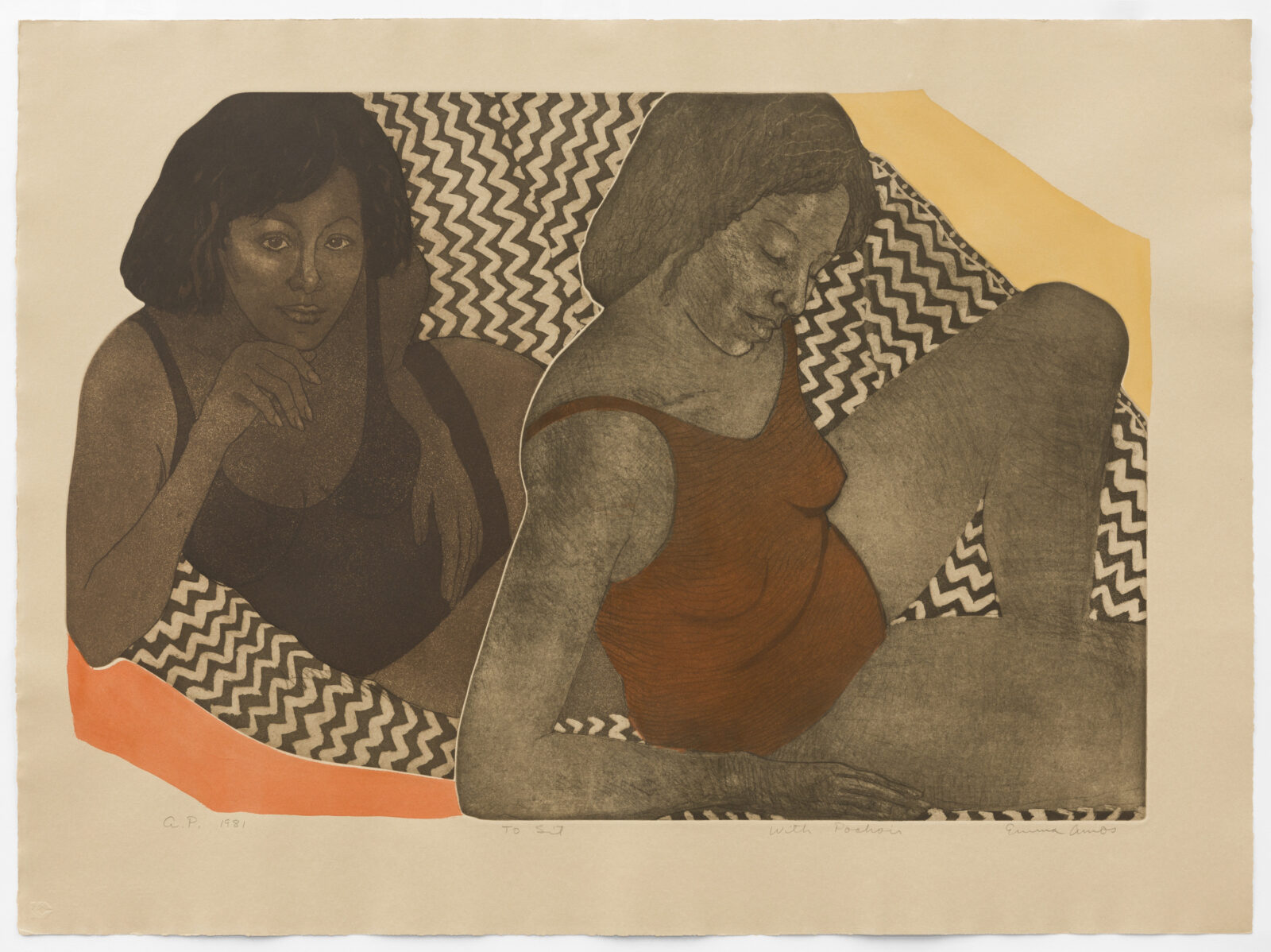 Emma Amos’ 1981 print “To Sit (with Pochoir),” for example, is the first work by the artist to enter the collection. The exhibition also builds on the museum’s strengths with Max Beckmann’s striking portrait of his wife, “Quappi with Violin” from 1930. SLAM’s holdings include the world’s largest collection of Beckmann paintings and prints, though “Quappi with Violin” wasn’t acquired until 2022.